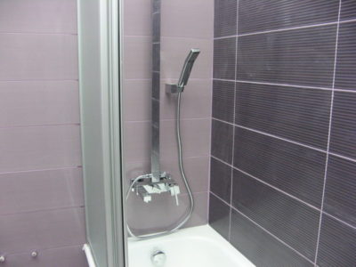 Наша компания выполнила ремонт санузла в микрорайоне Павшинская пойма. Расстановка сантехники проводилась по дизайнерскому проекту с учетом особенностей планировки помещения. После выполнения демонтажных и ремонтно-отделочных работ комната приобрела стильный законченный вид. Для облицовки стен мы использовали керамическую плитку нестандартных размеров светло-бежевого и коричневого цвета. На пол уложен кафель светлого оттенка.