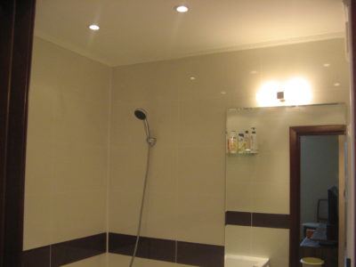 Мы выполнили ремонт совмещенного санузла на улице Коломенская по дизайн-проекту. Особенность помещения – нестандартная планировка с выступающим углом. Для комфорта жильцов мы перенесли унитаз на новое место и расположили его с правой стороны от входа, а перед ним установили стиральную машину. Центральное место комнаты перед входной дверью занимают умывальник с подвесной тумбой и большое зеркало. Вдоль глухой стены смонтирована ванна с функцией джакузи, а по бокам установлены полотенцесушитель и держатель для душа. При отделке стен использовался кафель молочного цвета. Придать интерьеру объема позволила контрастная фреза и фасады мойдодыра в темных тонах. Стоимость ремонта – 122000 рублей. Цена черновых материалов – 30 тыс. руб.