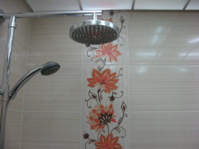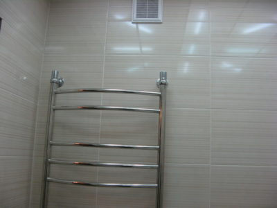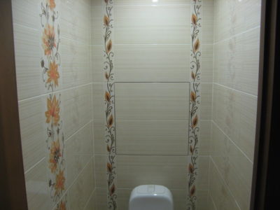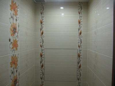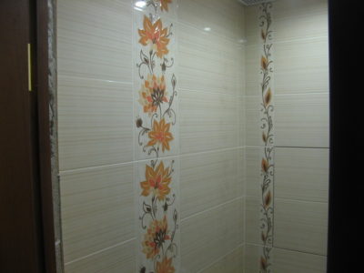 Наша компания выполнила ремонт ванной комнаты и туалета на улице Гарибальди. Для облицовки стен и оформления пола мы выбрали кафель кремового цвета. Разбавить скучный интерьер удалось за счет отделки боковых поверхностей и экрана под ванной декоративным узором из керамической плитки с роскошным цветочным рисунком. В ванной комнате установлены полотенцесушитель, мойдодыр и ванна с гибким душем. На потолке смонтирована подвесная конструкция из металлического профиля и стеклянных панелей. В туалете установлен новый унитаз, а инженерные коммуникации замаскированы под общий интерьер. Стоимость работ под ключ составила 112 тысяч рублей. Черновые материалы — 36 тыс. р.