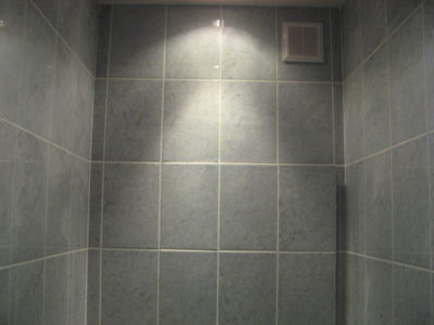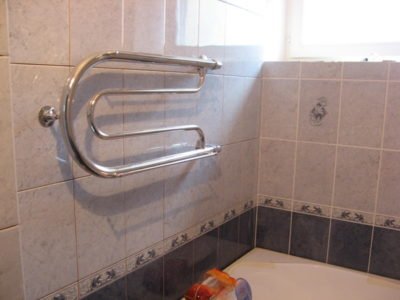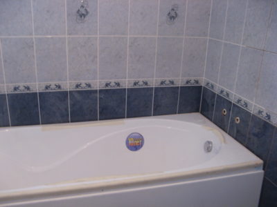 Наша компания выполнила капитальный ремонт раздельного санузла, выбрав для облицовки поверхностей в обоих помещениях плитку двух расцветок под мрамор (нежно-голубая и темно-синяя). В качестве разделителя использована декоративная фреза с цветочным орнаментом. В ванной комнате установлен полотенцесушитель, большая акриловая ванна с цельным защитным экраном и умывальник. В туалете старые трубы и унитаз заменены на современные аналоги. Для организации освещения в подвесной потолок вмонтированы точечные светильники.